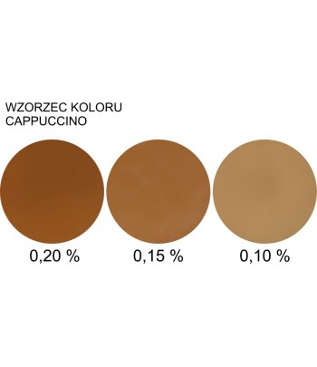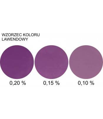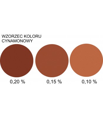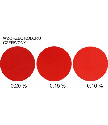 Zdjęcie "wzorzec" przedstawia rzeczywiste kolory uzyskane przy użyciu barwnika w ilości: