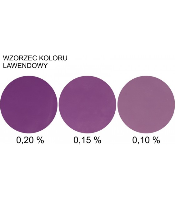 Zdjęcie "wzorzec" przedstawia rzeczywiste kolory uzyskane przy użyciu barwnika w ilości: