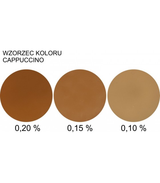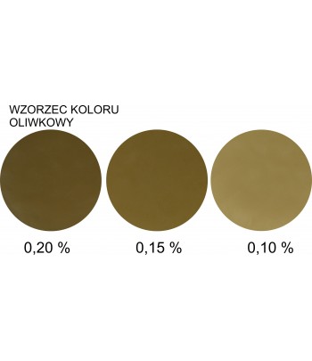 Zdjęcie "wzorzec" przedstawia rzeczywiste kolory uzyskane przy użyciu barwnika w ilości: