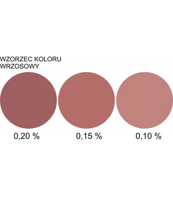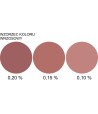 Zdjęcie "wzorzec" przedstawia rzeczywiste kolory uzyskane przy użyciu barwnika w ilości:
