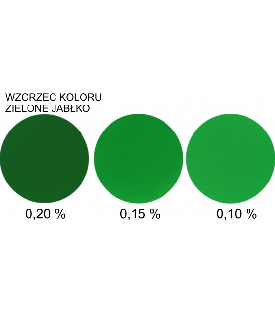 Zdjęcie "wzorzec" przedstawia rzeczywiste kolory uzyskane przy użyciu barwnika w ilości: