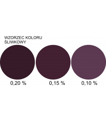 Zdjęcie "wzorzec" przedstawia rzeczywiste kolory uzyskane przy użyciu barwnika w ilości: