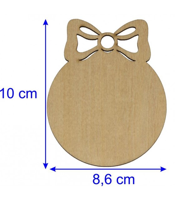 Bombki drewniane z kokardą 10x8,6cm Wykonane z wysokiej jakości sklejki liściastej grubości 2,5-3 mm.
