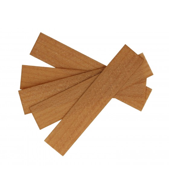 Zestaw: 50 impregnowanych, drewnianych knotów o długości 10 cm i szer. 20 mm.