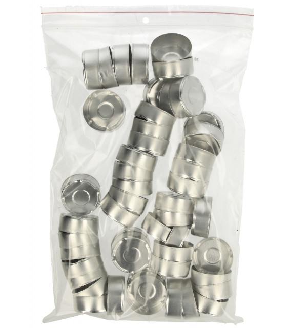 W opakowaniu 50 sztuk aluminiowych pojemniczków o średnicy 38 mm i wysokości 16 mm.