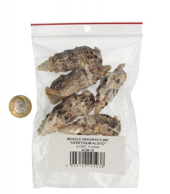 Naturalne, morskie muszelki, duże, w odcieniach brązu. Dzięki swojemu kolorowi oraz spiralnej budowie, muszelki idealnie nadają się jako element dekoracyjny. Muszelki CERETHIUM ALOCO świetnie nadają się jako uzupełnienie kompozycji świecowych, stroików, itp. Muszelki pasują do wszelkich aranżacji o charakterze marinistycznym.