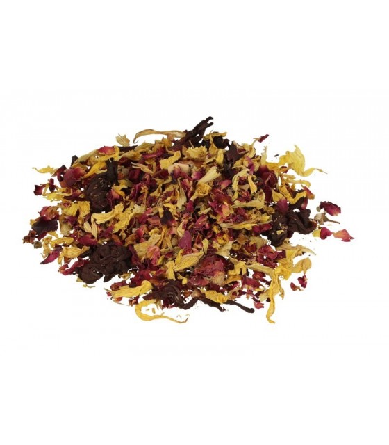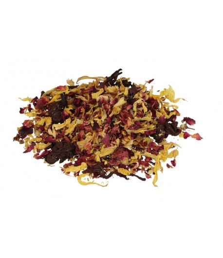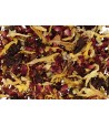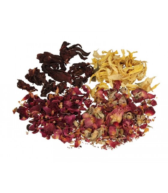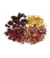 Mieszanka dekoracyjnego suszu doskonale sprawdzI się jako dodatek do świec czy też jako uzupełnienie kompozycji i dekoracji zatapianych w wosku. W skład mieszanki wchodzą: pączki róży różowej i czerwonej, płatki słonecznika oraz kiaty kocanki i wiecznika kulistego.