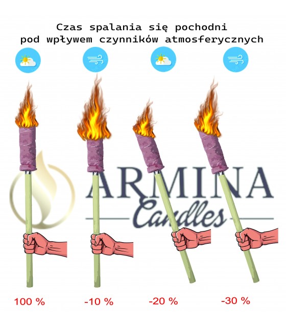 Pochodnie wykonane z krótkiego drewnianego trzonka i osadzonej na nim zwiniętej tkaniny bawełnianej nasączonej barwioną parafiną. Rurowy przekrój pochodni gwarantuje pewność palenia nawet w przypadku niesprzyjających warunków atmosferycznych, gdy pochodnia jest używana na wietrze lub jest w ruchu (kuligi, jazdy bryczką, zjazdy na nartach, wędrówki itp.).
