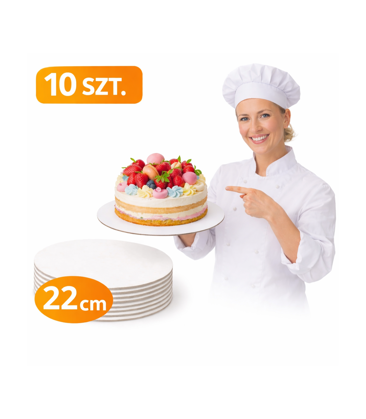 Podkład pod tort biały sztywny HDF 3mm 22cm x 10 sztuk