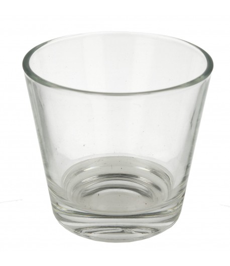 Świecznik z przeźroczystego szkła, przystosowany do podgrzewaczy i świec o średnicy do 4 cm.