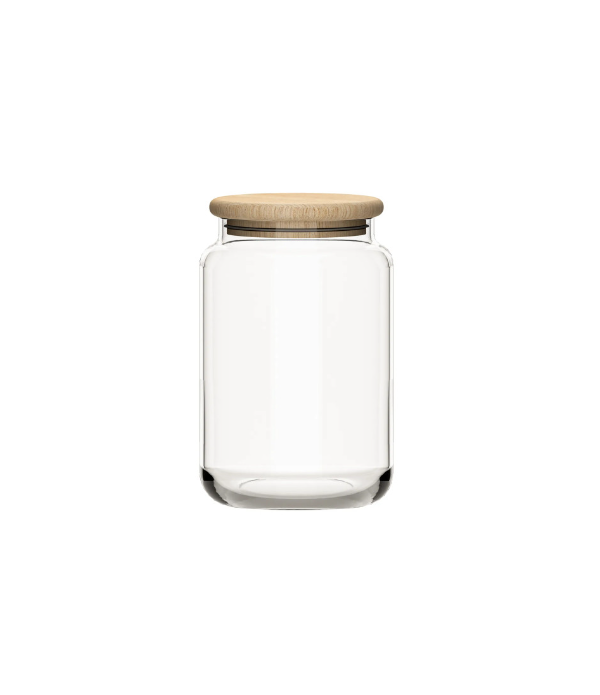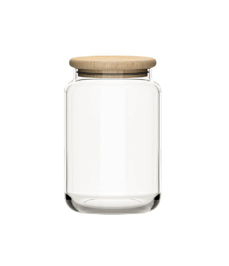 Wykonany z bezpiecznego szkła sodowo-wapniowego, pojemnik zapewnia trwałość i zdrowie, a drewniane wieczko z silikonową uszczelką dba o świeżość przechowywanych produktów, takich jak mąka, płatki czy cukier. Zapach świecy pozostaje na dłużej.