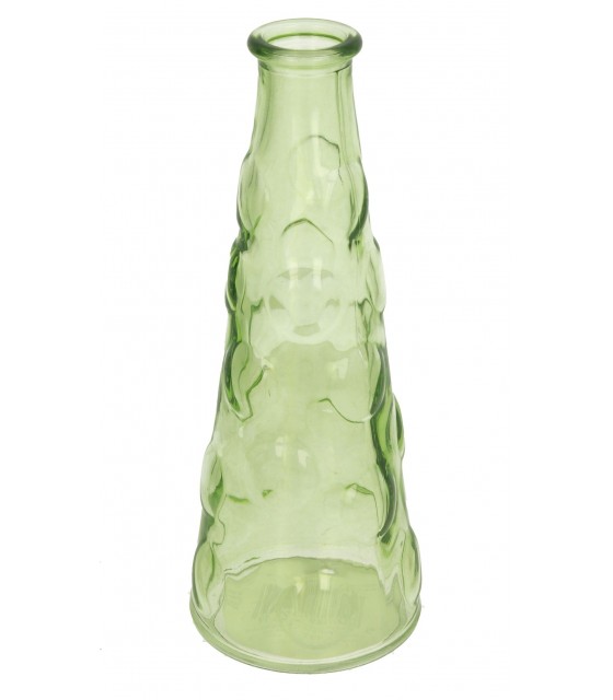 Wazonik szklany w kolorze zielonym, stożek o wysokości 16 cm