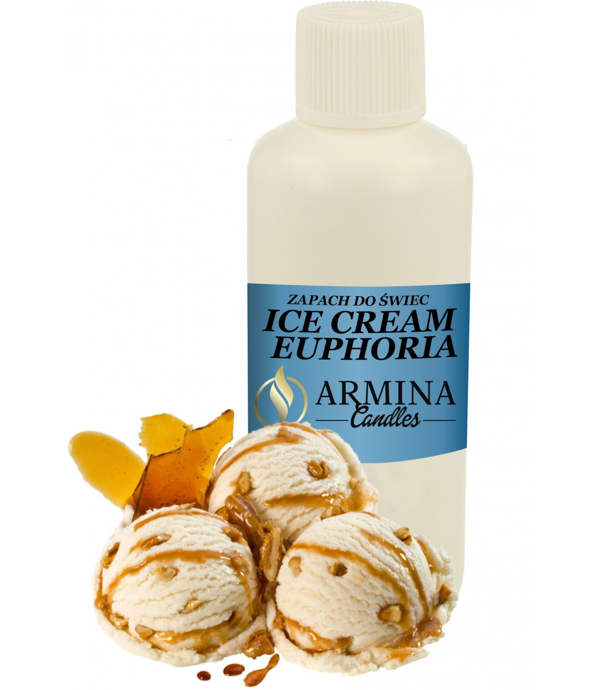 ICE CREAM EUPHORIA "LODOWA EUFORIA" Pyszny i słodki zapach pucharka pełnego lodów. Głównymi nutami zapachowymi tej kompozycji są wanilia, kremowa śmietanka, karmel, ciasteczko, biszkopt, karmel oraz miód.